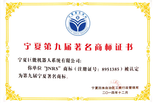 JNRS商標被認定為“第九屆寧夏著名商標”