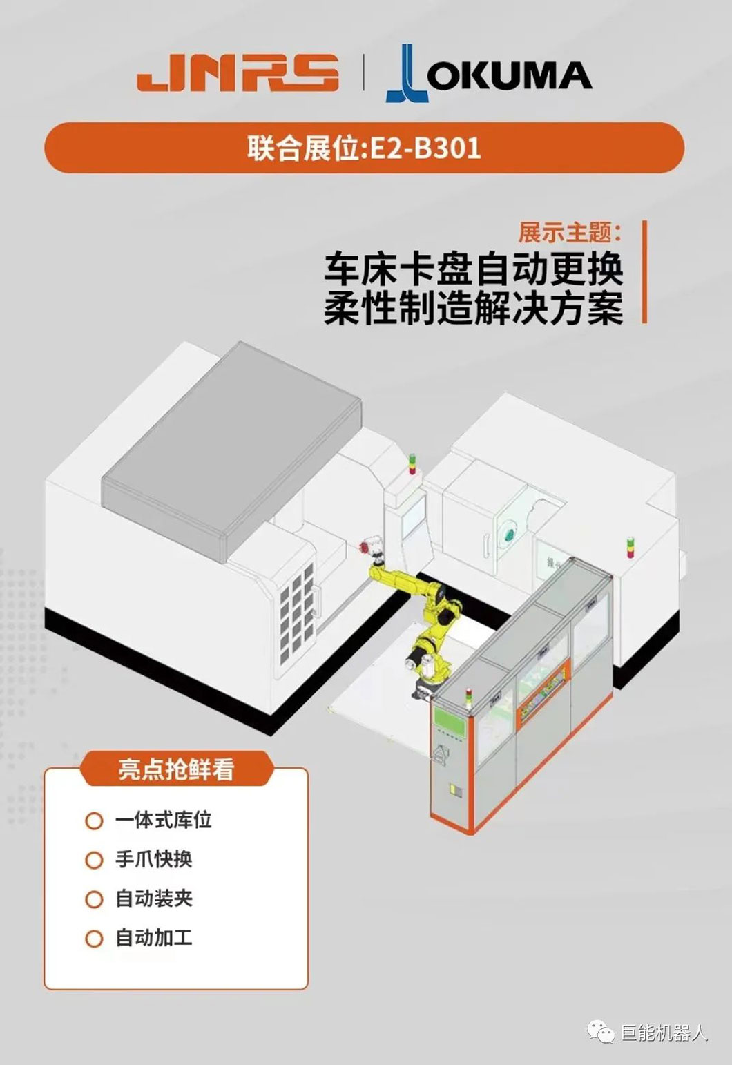 在CIMT2023日本展區(qū)E2-B301展位,上海大隈展出了1套自動化單元,這是上海大隈面對智能制造推出的車床卡盤自動柔性制造解決方案,其具有“一體化庫位、手爪快換、自動裝卡、柔性加工”等特點,實現(xiàn)了車床、加工中心、料庫的柔性無縫銜接,為智能制造貢獻了一個MINI版的柔性制造產(chǎn)線解決方案。
