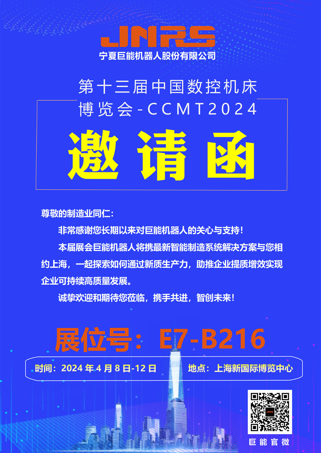 邀請(qǐng)函 | 巨能機(jī)器人與您相約CCMT2024,4月8日上海見(jiàn)!