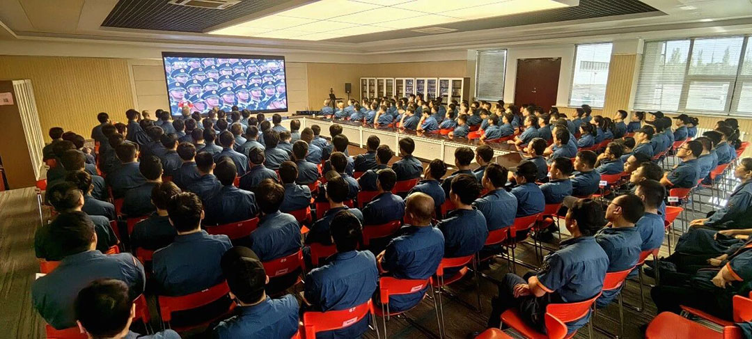 上圖:巨能股份員工集中觀看閱兵式藍(lán)杰鈑金分會(huì)場(chǎng)