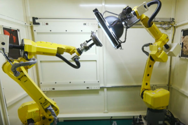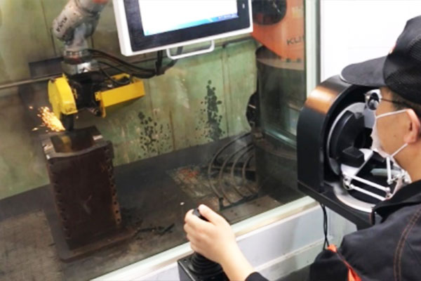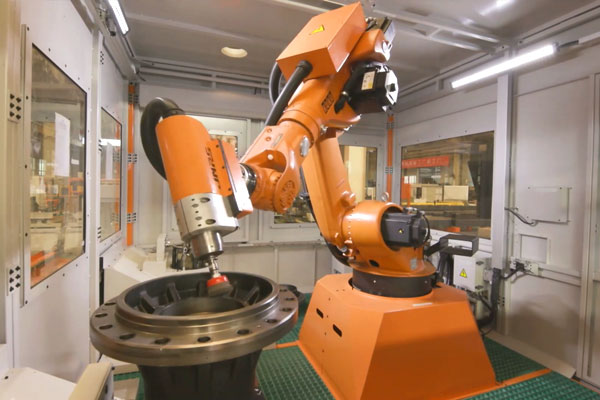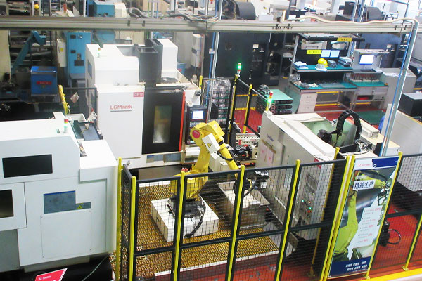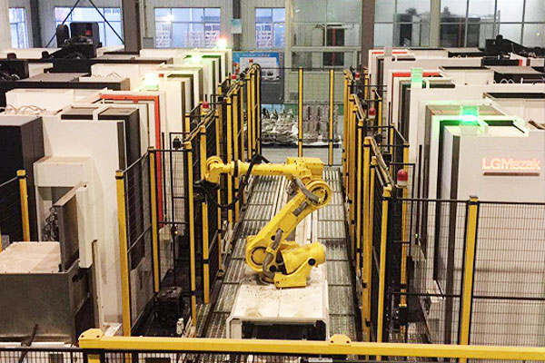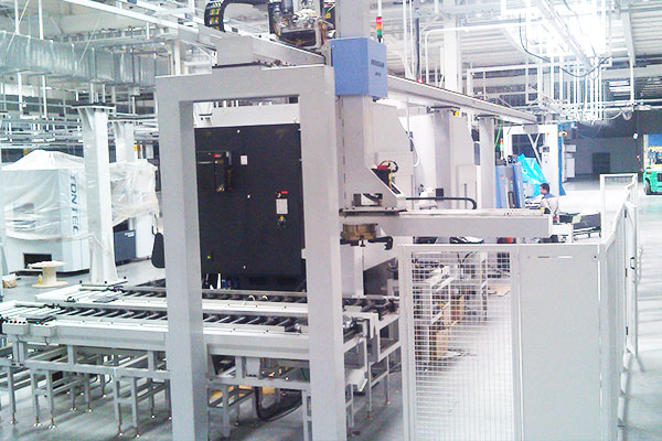 6月,固定安裝工業(yè)機(jī)器人,品字形服務(wù)多臺(tái)機(jī)床,形成工作島