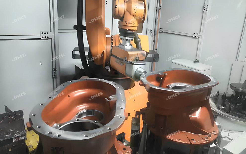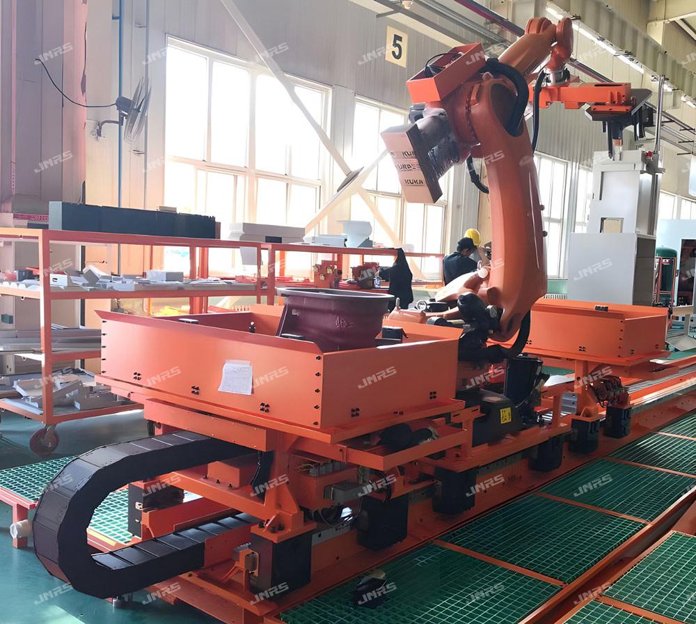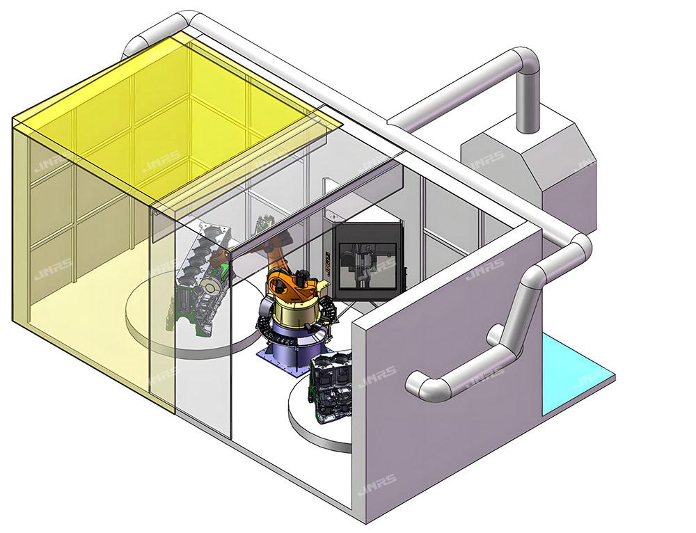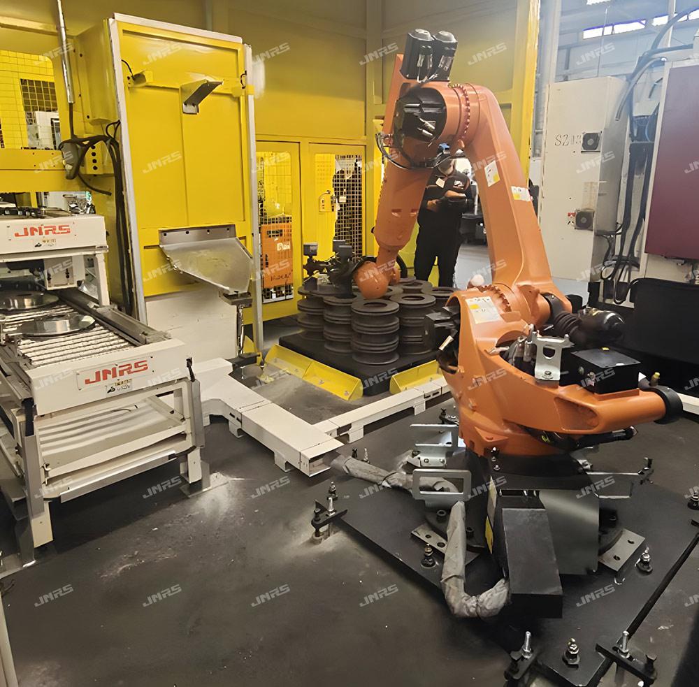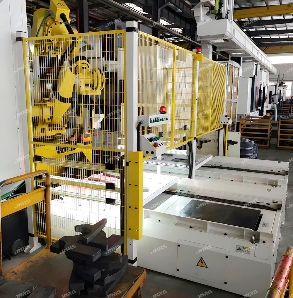 FR系列是基于機(jī)器人搬運(yùn)零點(diǎn)夾具托盤(pán)的搬運(yùn)系統(tǒng),是基于通過(guò)柔性制造軟件完成柔性加工的產(chǎn)品。該系統(tǒng)可實(shí)現(xiàn)多種零件的兼容,通過(guò)零點(diǎn)定位系統(tǒng)更換機(jī)床夾具托盤(pán)的方式是現(xiàn)實(shí)換產(chǎn)。系統(tǒng)包含加工機(jī)床,機(jī)器人托盤(pán)搬用系統(tǒng),線邊庫(kù),上下料站,清洗單元等。