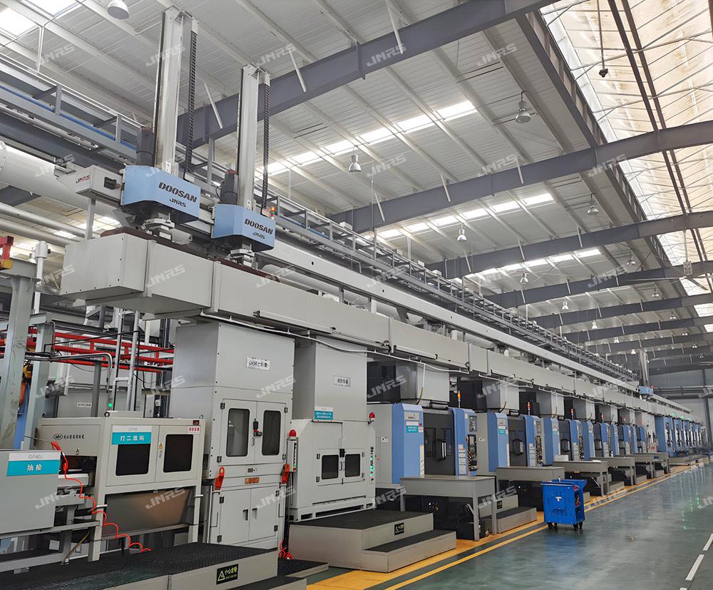 巨能機(jī)器人研發(fā)的R-FMS柔性制造系統(tǒng),可實(shí)現(xiàn)多種零件在一條自動(dòng)線中同時(shí)混線生產(chǎn),同時(shí)可接收來(lái)自用戶(hù)MES系統(tǒng)發(fā)來(lái)的生產(chǎn)訂單,可直接在系統(tǒng)上進(jìn)行計(jì)劃管理,實(shí)現(xiàn)多機(jī)床、多品種生產(chǎn)計(jì)劃的靈活調(diào)度和智能排產(chǎn),還可在手機(jī)等智能終端設(shè)備遠(yuǎn)程監(jiān)控生產(chǎn)狀態(tài)、下達(dá)生產(chǎn)計(jì)劃、調(diào)整生產(chǎn)順序,實(shí)現(xiàn)智能化、柔性化生產(chǎn)模式。